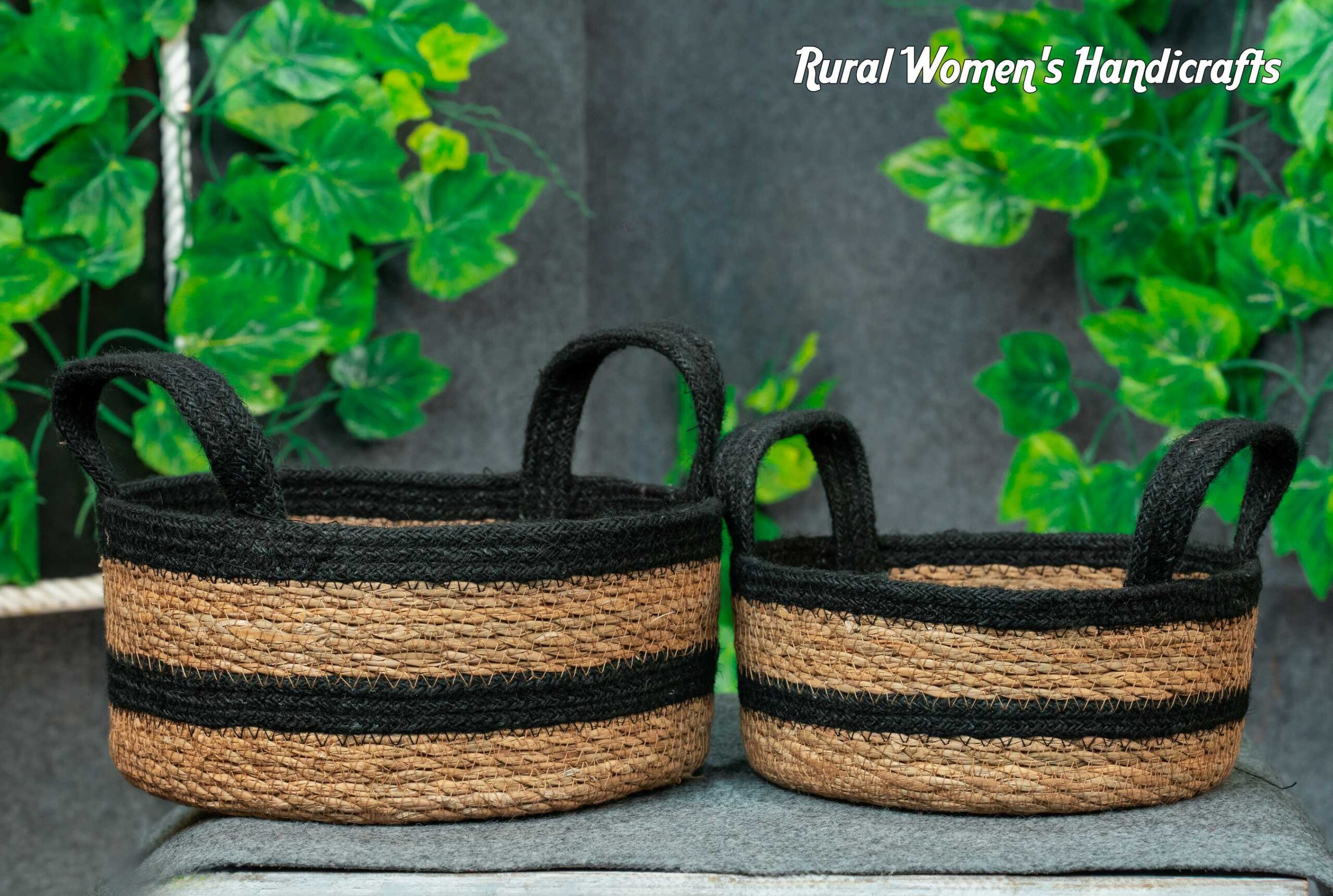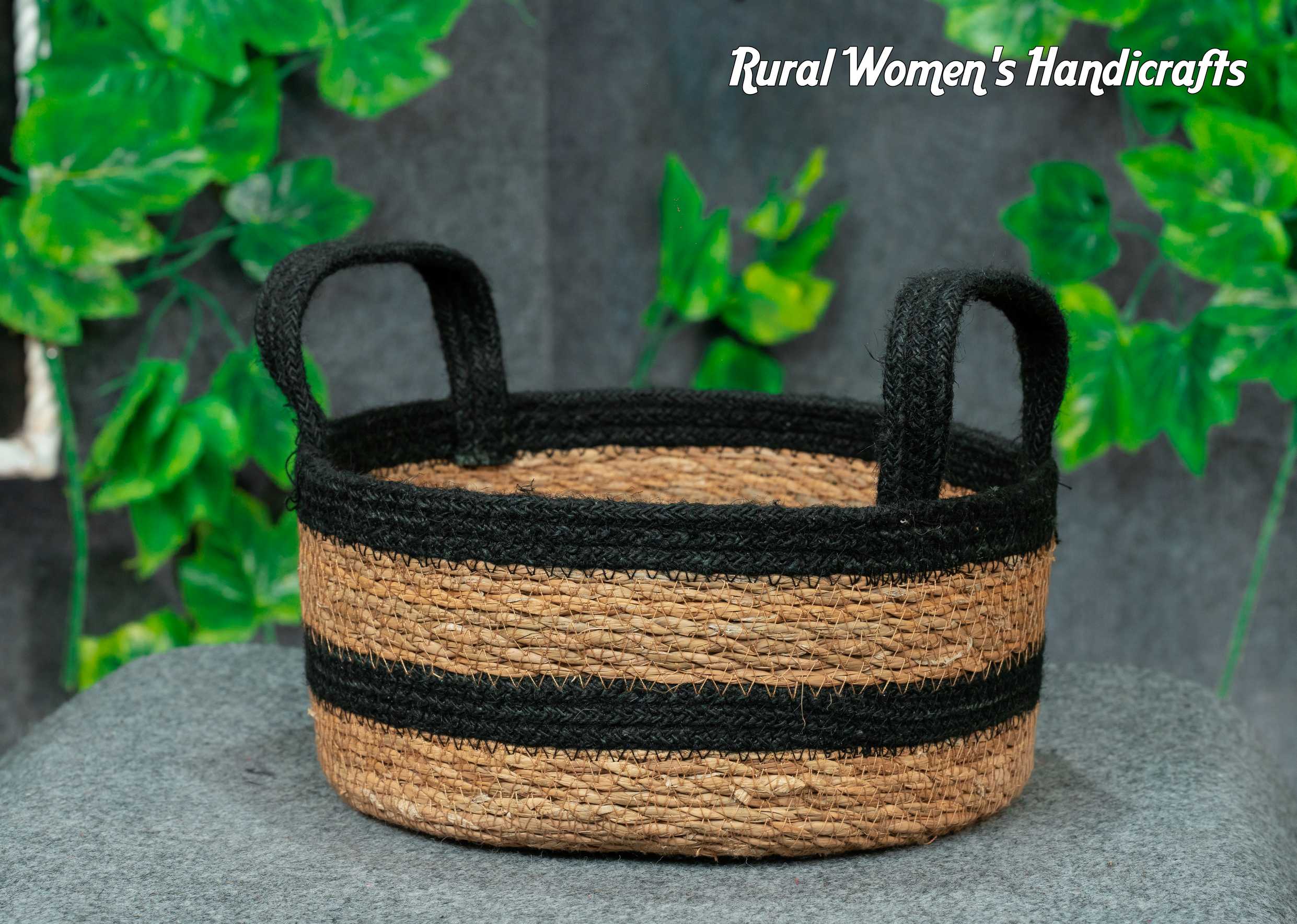 Round Chaka basket With handle (natural+ black Rope)
