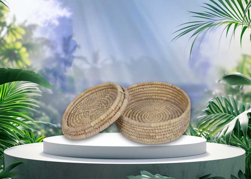 Size: Top Dia -25cm, Base Dia -24cm, Hight -8cm Materials: Date Leaf Product Code: FH-008
